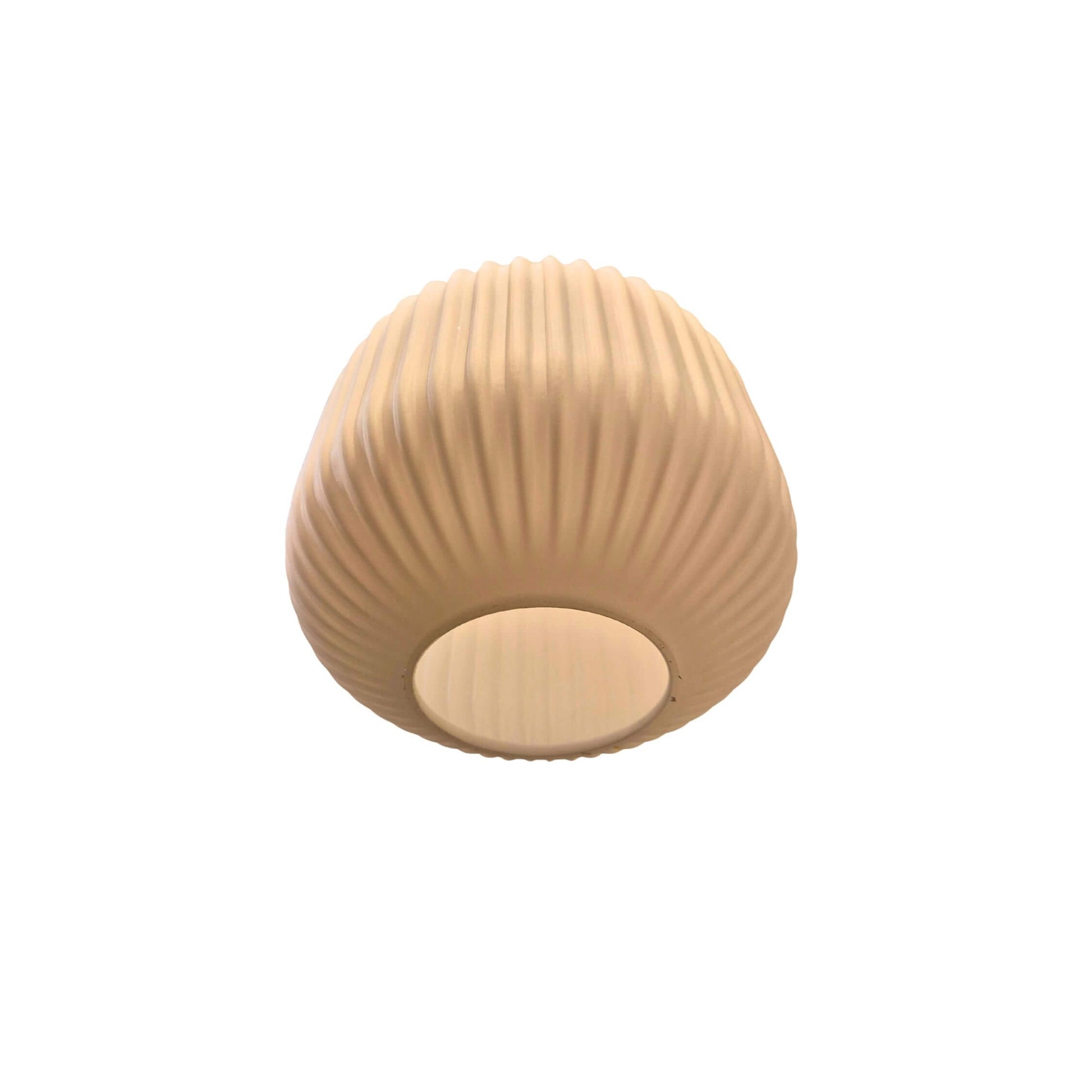 העיצוב המעוגל והמרקם המיוחד הופכים את המנורה לפריט עיצובי בולט בחלל, המתאים במיוחד להארת פינות אוכל, חדרי שינה או כאלמנט מרכזי בחללי מגורים המחפשים נגיעה של חמימות ויוקרה.