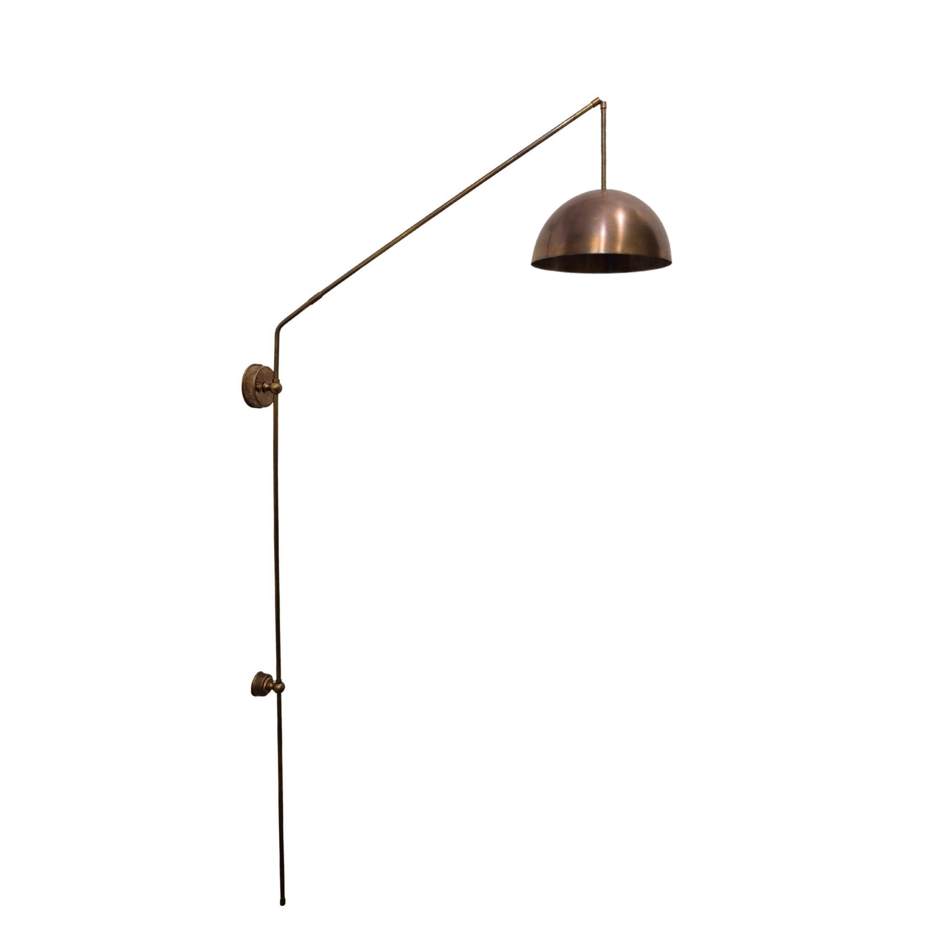 מנורת קיר אלגנטית במראה תעשייתי, עם זרוע ארוכה הניתנת לכיוונון וכיפה עשויה פליז מלא. גוף התאורה עשוי פליז בגימור מיושן, ומיועד להארת פינות קריאה, חדרי שינה או פינות עבודה. הזרוע המעוצבת והארוכה מאפשרת להאיר בדיוק את המקום הרצוי. המנורה מגיעה עם כבל באורך 2 מטר ומפסק לבחירה (יד/רגל), ואינה דורשת הכנת נקודת חשמל בקיר, מה שהופך אותה לפתרון נוח ופרקטי.