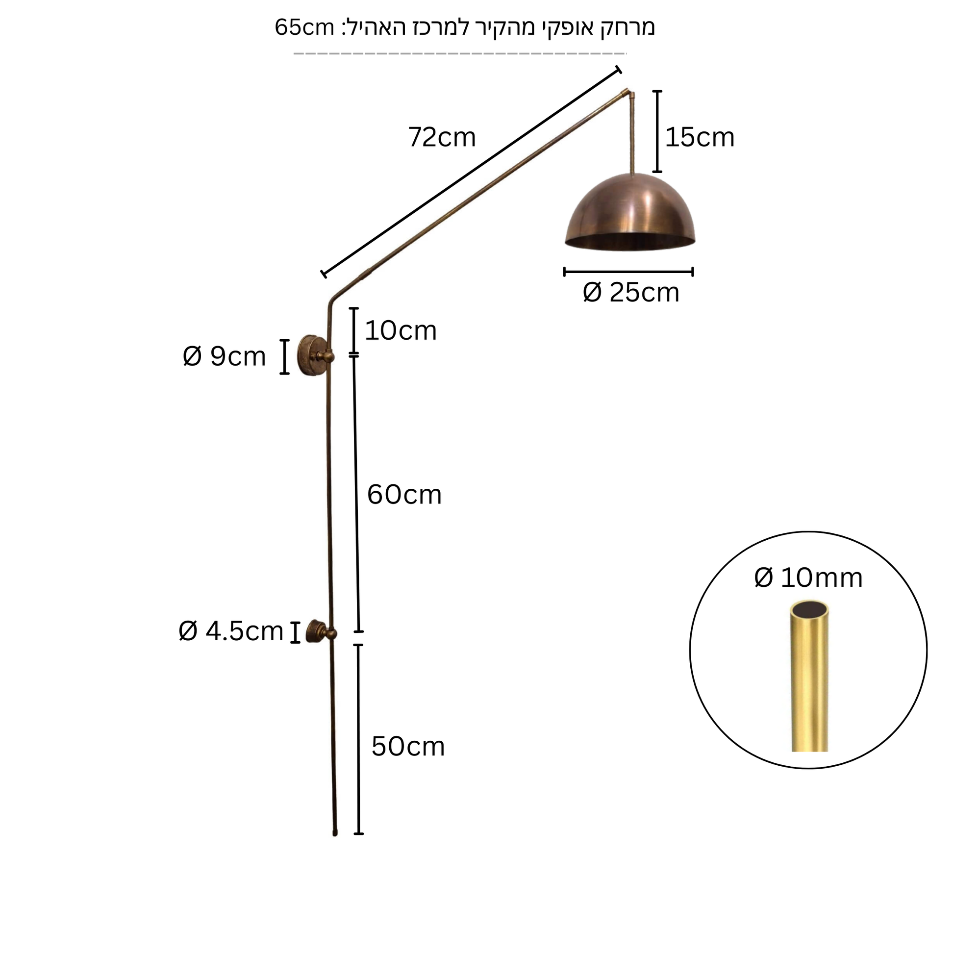 מנורת קיר זרוע ארוכה עם כיפת פליז בקוטר 25 ס"מ