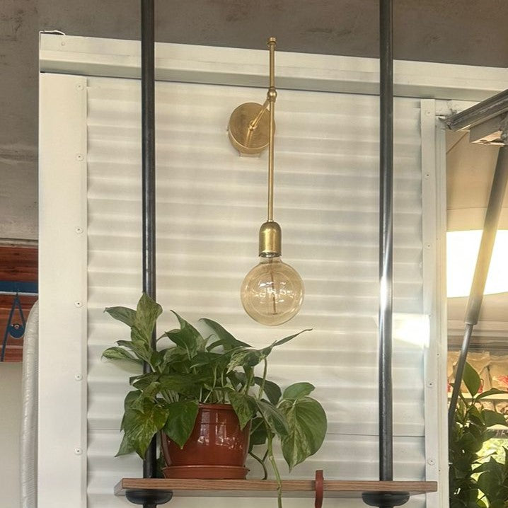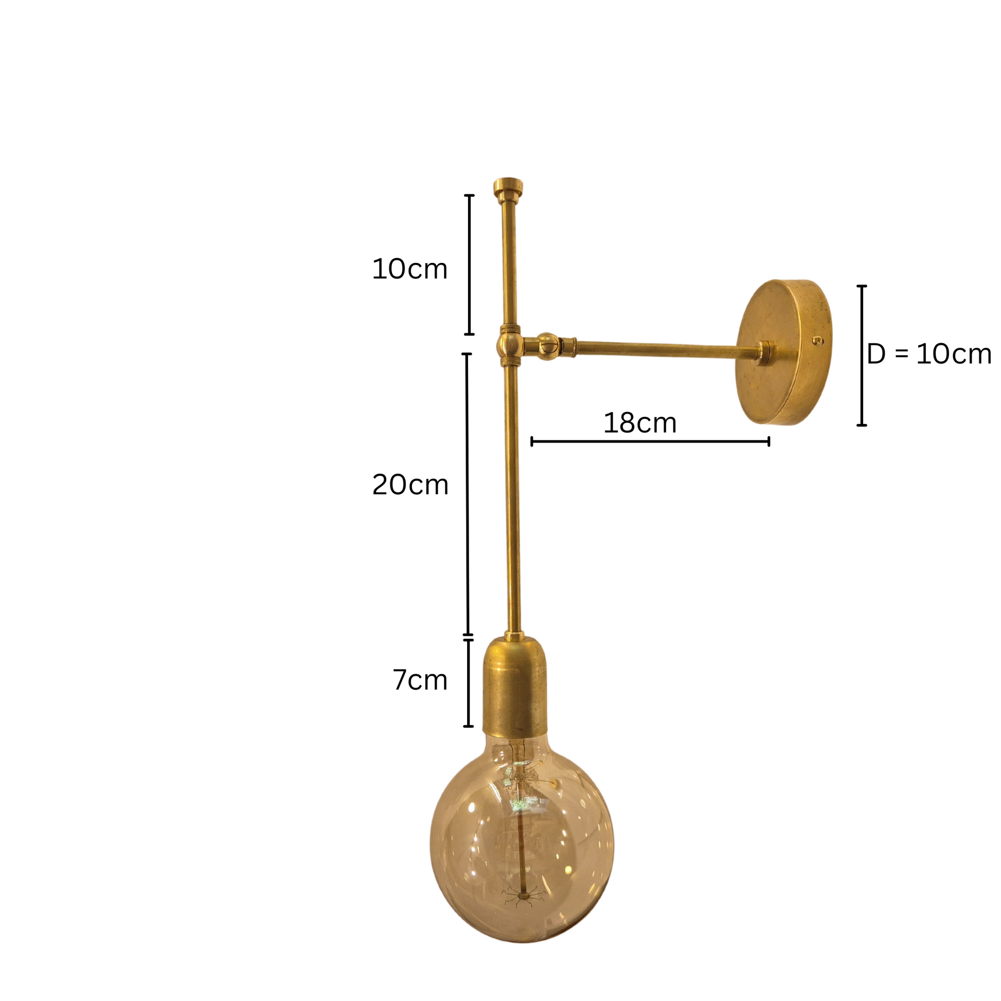 מנורת קיר מעוצבת בסגנון תעשייתי-מינימליסטי, עשויה כולה פליז. למנורה מבנה T ייחודי עם זרוע אנכית ובקצה נורת וינטג' חשופה. היא מעניקה פתרון תאורה פונקציונלי ומלא סטייל, ומושלמת להארת מסדרונות, לצד המיטה או כפריט עיצובי בחלל מגורים.