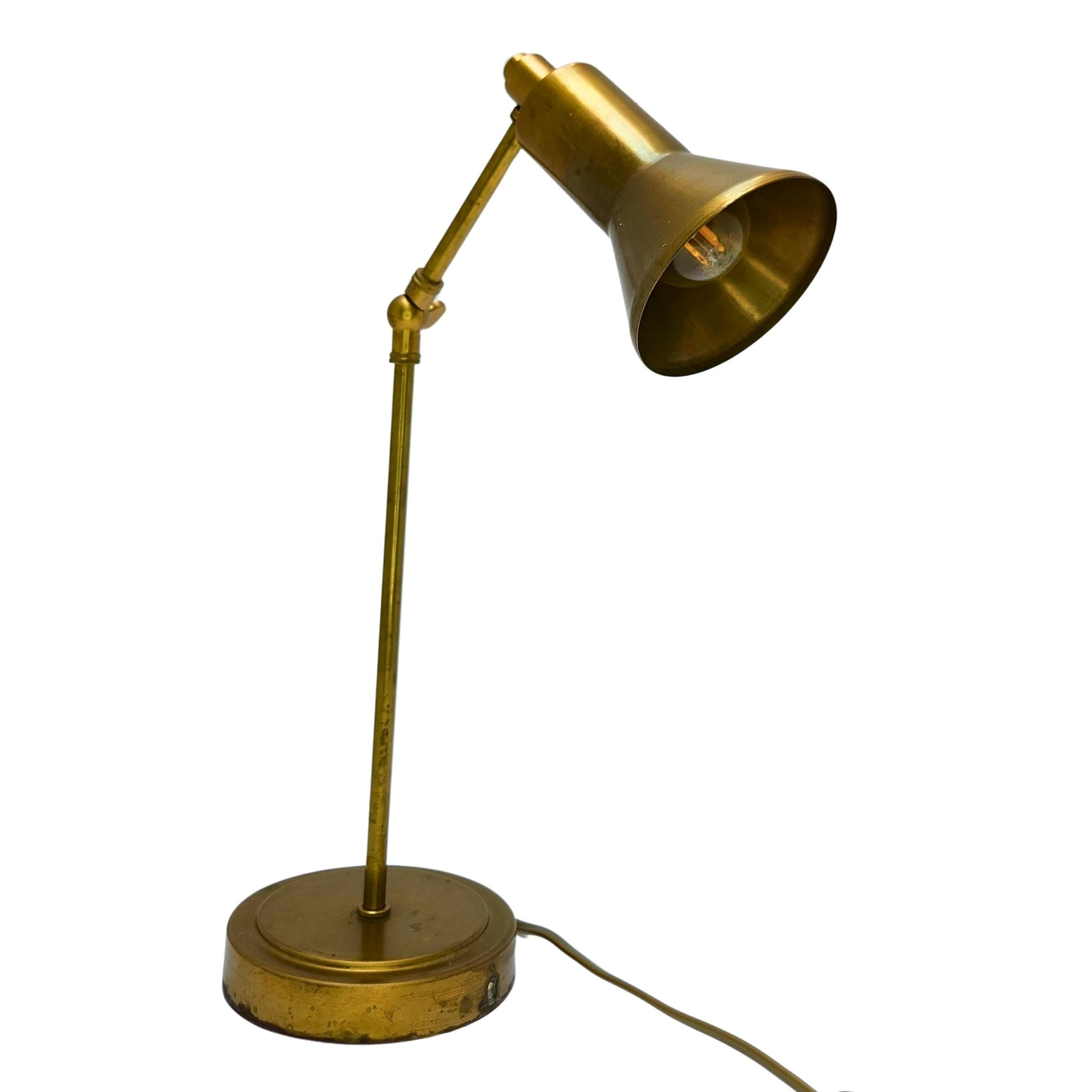 A beautiful vintage table lamp made of brass. The classic design and high-quality materials make it a perfect item for a workspace, bedroom, or living room. With the adjustable arm, you can direct the light exactly where you want it. This lamp will add a touch of vintage charm to any room