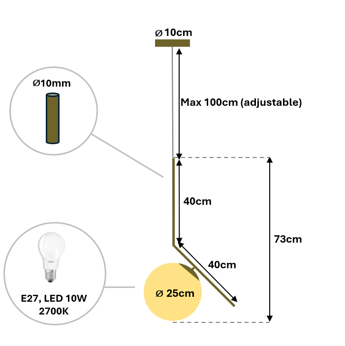 מנורת תלייה מודרנית זרוע וכדור 25