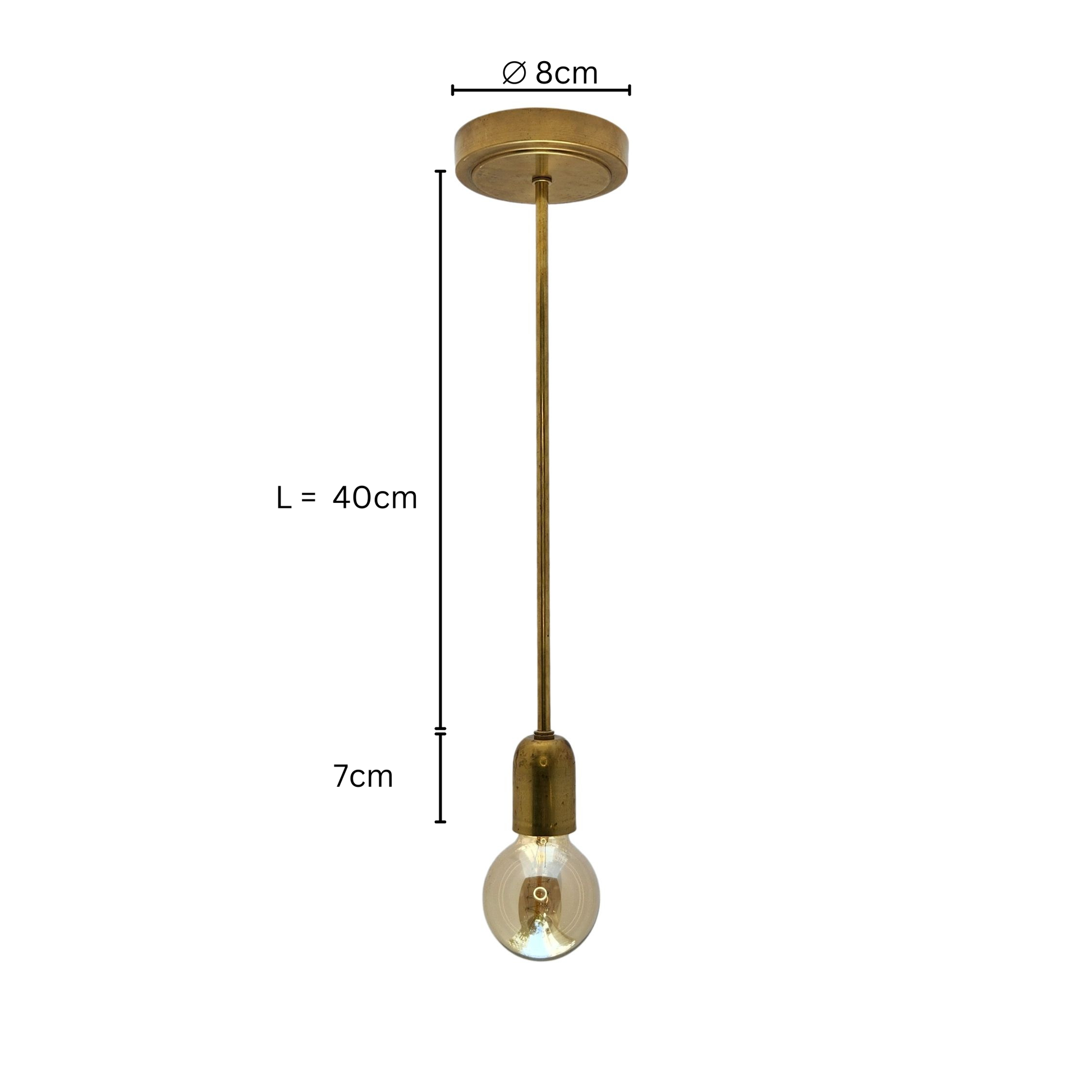 מנורת תלייה מינימליסטית עשויה מפליז עם נורה חשופה בסגנון וינטג'. העיצוב הנקי והפשוט יוצר מראה תעשייתי ואלגנטי, ומתאים למגוון סגנונות עיצוב. היא אידיאלית לתאורה ממוקדת מעל אי במטבח, שולחן אוכל או כפריט עיצובי ליצירת אווירה חמה ומלאת אופי.