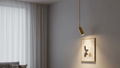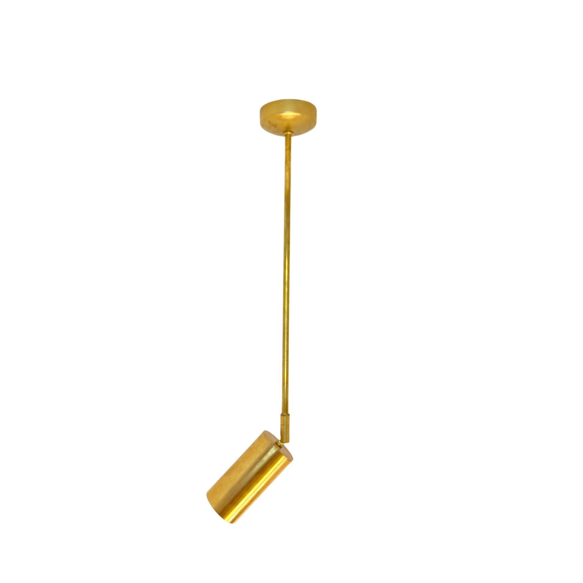 ספוט תלייה מודרני ואלגנטי, עשוי פליז בגימור מוברש. גוף התאורה הגלילי מחובר במוט ישר, וניתן לכוונון על ציר כדי לכוון את אלומת האור בדיוק לנקודה הרצויה. זהו פתרון תאורה מושלם להדגשת פינות מיוחדות בבית, יצירות אמנות או מדפים. ניתן להתקין אותו כפריט בודד מעל פינת קריאה או במספר יחידות מעל אי במטבח כדי ליצור מראה נקי ועכשווי.
